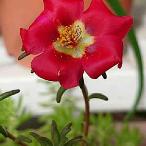 今朝の マツバボタン♪ スベリヒユ科 黄色い葯の雄しべは多数あり 雄しべより長く飛び出した 1本の雌しべの先端は 5~9裂 雄しべは 軽く触れると雌しべの方向に 動く 面白い性質がある 夜間に気功を開いて 二酸化炭素を蓄え 陽射しの強い日中は 気功を閉じて 水分蒸発を防ぎ 光合成をするCAM植物 CAM型光合成 砂漠🏜️等の多肉植物や 同様に水分ストレスの大きな環境に生息する着生植物に多く見られる 光合成の 一形態 これを行う植物を CAM植物と呼ぶφ(..)