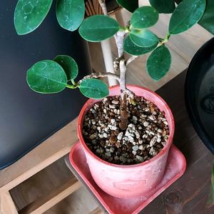コパンダガジュマル 5月27日(火)植え替えました。 タグの説明によると生育期は湿った状態を保つ…とのことで普通のガジュマルの感じで管理したのが過去の失敗の原因かな…? ということで土は細かめのココチップ主体で赤玉土多めにした無機質を隙間に流し込む感じで保水性を重視しました。 鉢はお店の処分品コーナーにあったプラ鉢。
