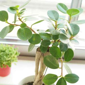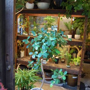 ちょっと珍しめのガジュマル、パンダガジュマル。 まん丸で肉厚のぽってりした葉が可愛い❤️ 他のガジュマルよりも枝ぶりがしなやかなので 柔らかな雰囲気☺️ 美しい発色の赤い鉢と パンダガジュマルのグリーンが引き立てあう👍✨