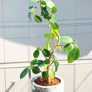 おはようございます(´∀`*) 昨日はよく降りました☔️ 今日もどんよりとした朝です パンダガジュマル🌿 葉っぱの増加で傾いてしまっていたのと 鉢底から根っこがひょっこりしてたので 植え替えをしました(.*◡͐︎*)b 細〜いうえに一回転➰しているため バランスを取るのが難しい子です💦 お迎えした頃は新芽が出ると他の葉を落としたり 黄色く変色したりで心配しましたが 今では環境に慣れたのかどの葉もイキイキ! この佇まいが気に入っているので 折れそうになるまでは支柱無しでいきたいな( ˘͈ ᵕ ˘͈ )