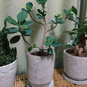 パンダ🐼ガジュマル。 植え替え。 今回は底穴ありの鉢にしましたから、水遣り頻度は多くなるかな🤔