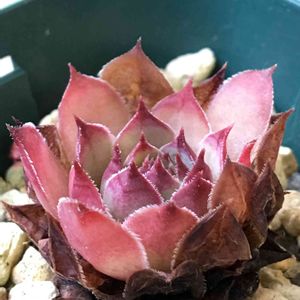 😅こんばんは。 とっても分厚い肉厚葉で、好きなの。 肉厚さを見てもらいたくて、写真撮ってからアップにしたけど、少しボケてるね。😅 この子だけは、まだほんのり色が残って桃みたく見えました。 これは購入時から普通のやつで、赤ちゃん達も普通の肉厚ちゃんです。😊 この品種はモンストになったりします。モンストになった物でも、元に戻り易く、でも又、モンストになったりします。