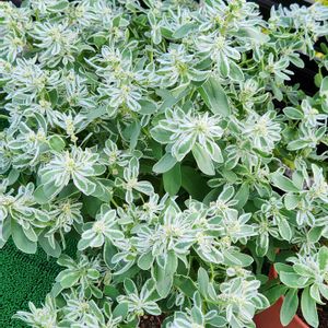 ハツユキソウ こぼれ種から出た苗を 花壇に植え替えたらモリモリになりました かわいい種もできてきました