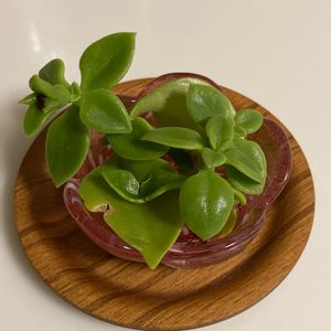 ベビーサンローズ👶 たぶん。 帰宅した母が持っていたので水挿しに🌱 デイからのでしょうが、経緯不明😅 我が家のはしわしわで春を待っています✨ 水挿しから根がでたら、これのが先に咲くかな〜🤔🌸