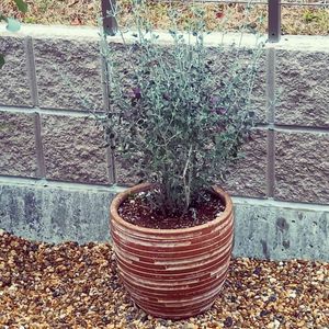 鉢植えにしたホワイトソルトブッシュ。葉の色が赤くなってるけど、大丈夫かな、、買って植えた時は葉っぱも緑で元気だったので心配。。
