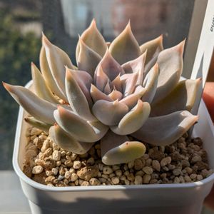 20241206 エケベリア ユリアナ ①② ユリアナさんも成長点周りがほんのり色付いてきました。色白さんなので陽の光の当たり具合ではほんのりピンクに染まることも😍 ③ 肌理の細い白さです😘 ④ 意外に葉挿し出にくいです💦元々発根も遅かったのですが、6枚中4枚がイカです😭ボチボチカリカリを外さないといけないかも🤔実生の成長が速いのでそっちに期待😁