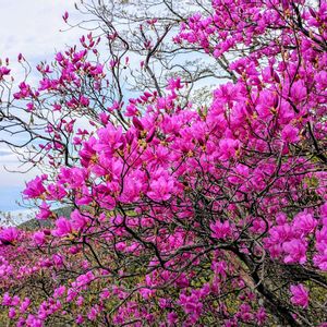 ミツバツツジ ツツジ科 袈裟丸山にて霧の中、写真で表現できないほどに鮮やかでした 2025.5.24撮影