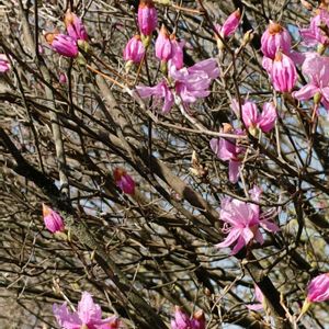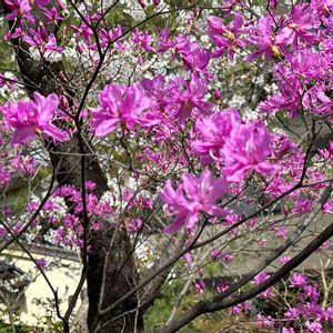今日の午前、市内を散歩途中に見かけたミツバツツジ。