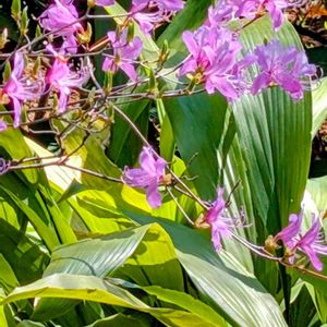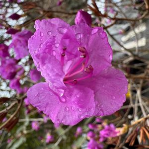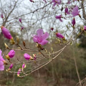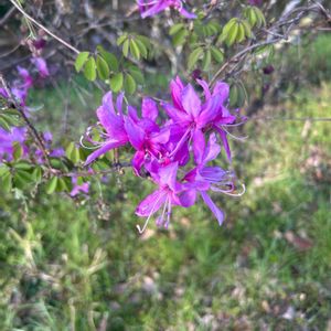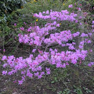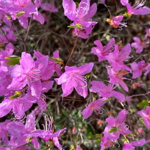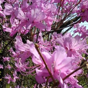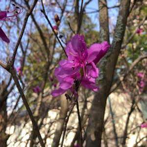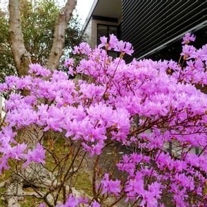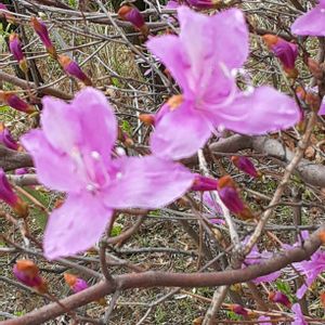 ピンク色のような、紫色のような「ミツバツツジ」のお花をパチリ!📸🌸💜🌿😊😄🌞✌️ 今日も調いました。♨️🧖♂️🍺🎶👌