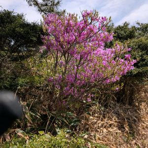 里山徘徊 ゴージャスで派手な娘達です。 ✌️✌️✌️😃😃😃✌️✌️✌️ 4/28 新津丘陵 ①②広義シャクナゲ(石楠花) ③広義ミツバツツジ(三葉躑躅) 護摩堂山中腹の展望広場です。ココの娘達は、自生はしているけど、はたして野生なのか⁉️。オイラの推測だと、おそらく植栽だと思います。森林公園と思えば、マァ、これも有りかナ。 シャクナゲはやはりゴージャスですネ。よく来るヒメシャガの咲く頃は、花が終わってます。花の季節は初めてです。ミツバツツジの花は終盤です。綺麗花を選んで撮影。2本の木の花の色が、ビミョ〜に違います。雄蕊が10本です。雪国か東国か、その園芸種か、この地域は花卉栽培が盛んですからネ。 ✌️✌️✌️😃😃😃✌️✌️✌️ 5/1 角田山 ④⑤ ヤマツツジ(山躑躅)ツツジ科ツツジ属の半落葉低木。咲き始めました。ココの娘は野生です。紅いですネ。日本海に沈む夕陽の色見たいです。 ✌️✌️✌️😃😃😃✌️✌️✌️ ツツジが咲き進むと、初夏ですネ。