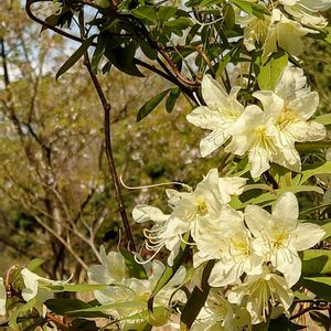 今日のお花ツツジ 1️⃣淡いクリーム色のヒカゲツツジの花 関東以西、四国、九州迄分布している日本固有種のツツジです。 山地の渓流沿い等に咲きます。 2️⃣3️⃣ミツバツツジ 雄蕊が5本あります。