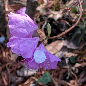 植物園で出会った 今日のお花 ミツバツツジ(三葉躑躅)です。 ミツバツツジは 紫色の花の開花後 あるいは ほぼ同時に 3枚の菱形の葉を展開することから その名前が付きました。 満開の花が お日様にキラキラと輝いて とっても綺麗な情景です。🤗✨ 日本 東アジア原産。 ツツジ科ツツジ属の落葉低木。