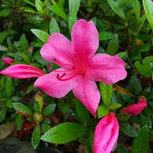 こんばんは🌙 北側の日が当たらないところで ひっそりと咲いているサツキ🌺 雨に濡れて鮮やかなピンク🥰 数日前、もち病を大量に発見😲 ジョキジョキ剪定をしたので 花芽も花も切ってしまいましたが✂️ ここだけは残っていました😌 明日は晴れの予報です☀️ 今日より10℃ぐらい上がるそう🌡️ 温度差にご注意ください😌 今日も1日お疲れさまでした😪