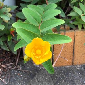 ヒペリカム属🌱🌱花は、どう見てもパツルムだけど、ヒドコートの特性も。 どっちでも、可愛い✨✨ 葉は、十字対生。花3㌢強、どの花も咲き方は全開しない。草丈は脚のスネ辺りまで。シーズン終了間近🥵