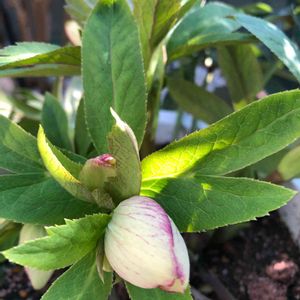 おはようございます🌱 暖かい朝 クリスマスローズの蕾 ここから いつ咲くのか? おそらくしばらく咲かない クリスマスローズ 何色かしら どんなお花かしら 🌱🚃いつもの電車🌱🚃