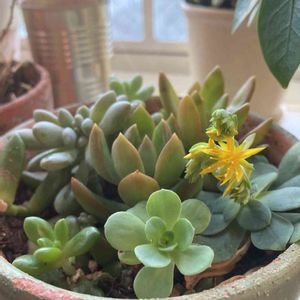 おはようございます☀ 地植えから救い出した、多肉達。 とりあえず植えた鉢で、可愛い😍お花🌼発見❗️ 薄化粧みたいです。