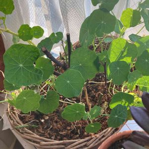 お庭から冬越しのため、お家管理🏠の ナスタチウム🌼 水苔入りの土で生き生きしてきました。 ついでに剪定した薔薇🌹を挿木にしてグサグサしてます。 おとなりは、黒帽子さん。