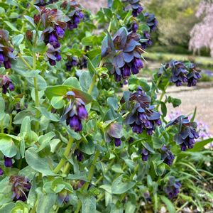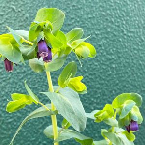おはようございます♪̊̈♪̆̈ 今日はいいお天気です- ̗̀ ☺︎ ̖́- よかった✨ セリンセマヨールが咲きました·͜· ♡ 去年の秋に 苗でお迎えした子 特徴のある葉っぱにうつむき加減の小さなお花( ˆ꒳ˆ )可愛い〜 こぼれ種でたくさん増えるといいな🌸