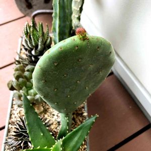 おっ😳なんか出てきた🌸 これは花芽なんか胴体になるんか⁉️ どっちにしても毎日の変化が楽しみすぎる💕 うちにあるウチワサボテン全部にこれ出てきたから今成長期なんやね〜😆👍🌵