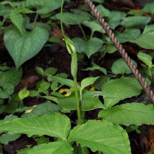 反り返った花被片が特徴的なヤマホトトギス。 花期には少し早かったので、咲いている花を見つけるのに少し苦戦しました。 奥高尾では、盗掘者にヤマユリと間違えられたのか多数引き抜かれて投棄されていました。周囲には掘り返され、球根だけ取られて横たわるヤマユリの茎も多数。散々な有様です。