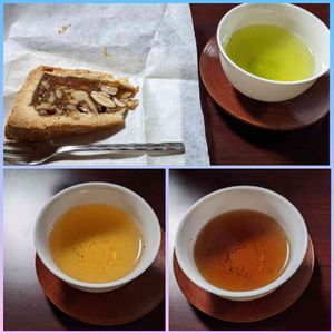 クルミが入ったスイス🇨🇭のお菓子 🧇「エンガディナー」と日本茶🍵の色 日本茶の講座で心とカラダを温めよう!学びました( ^^) _旦~~ シュンメイ茶、ボウ茶、紅茶🍵