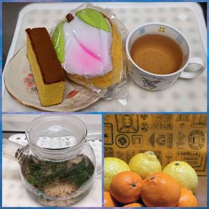 ハーブティー🌿「イエルバブエナ、ローゼル、レモンバーム」 長崎の桃カステラ🍑と福砂屋のカステラとポンカンとハルカ🍊が実家から送ってきました(๑><๑)۶