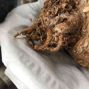 先日ご相談したロホホラですが、 夜ですが心配すぎて掘り返したら根はこのような形でした🤭 以外と根が張り巡らされてると 思いきや、全然根が無い印象です。 また、この写真でも本体の黄ばみがわかるかと思います… 掘り返した際に、悪さをしている 可能性があるものが2つあった為 後ほどアップします。