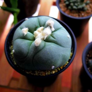 ロホホラ ディフューサ Lophophora diffusa 初めてのロホホラに、初めての花が咲きました!