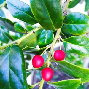 クリスマスホーリー🎄 ヒイラギモチ‼️ 赤い実を、鈴成りに着けて、畑のツリーになっています 近くの知人のお宅の、畑はまさに Xmas🎄