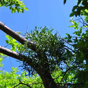 テントを張った桜の木陰にて。 上を見上げたら、2m位の低い場所に 宿り木が😳