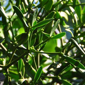 宿り木をこんなに近くで見たのは始めて。触ってみたくなるような肉厚の葉に、可愛らしい実をつけていました。