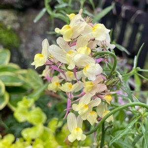 黄色にピンク春らしい色の花 リナリアとストック❁❀ リナリアが ふんわり大きくなりました💛 でも、明日は☔で冬の寒さ💦 お天気が春と冬を行ったり来たり(。-_-。)