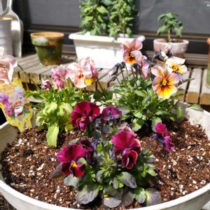 お気に入りの寄せ植え♡ 春になったら こんな風になったらいいなぁと想像した 7割くらいの出来だけど 華やかな色合いで 数ヶ月間楽しませてもらいました😌💕 最近は、土はしっかり濡れてるけど 気温が高くなると すぐぐったり💦 週末お別れ予定です💧 また来シーズン出会えたらいいな💕