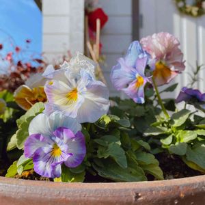 好きなお店にあった寄せ植えを真似っこしてみました💕鉢の大きさの都合で入らなかったけど、もう一つ黄色のジュリアン入れたらもっと良かったんだと、、、思うのだけどジュリアン、難しくないですか? お水のやり加減が。 それで加えるのを断念したのです。 ネメシア メーテル〈グッピー〉可愛い。 葉牡丹フレアホワイト素敵ですよね🧡