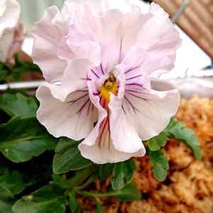 育種家うえたさんのオリジナルミニパンジー 『春マンボー』です✨😊✨ まだ植えたばかりなので株は広がっていませんが、これからどんどん株が大きくなってたくさん花が咲いてくれるのを楽しみにしています🎶