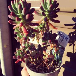 やはり、葉によって芽の色が違うのが葉挿しの醍醐味~(*´罒`*) 最近の子達を成長記録で切り株に置いてみた。 可愛い~♥大きくなっておくれ٩(ˊᗜˋ*)و 🐸さんは、まだ芽に気付いてないもよう。。。(笑)