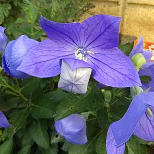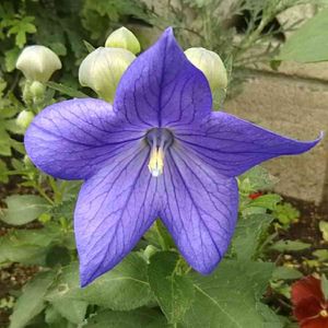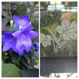お疲れ様です☺️ 3年目のキキョウ💜 猛暑や雷雨、ヒョウに耐えて 頑張ってます😊 今日、7月18日は父親の命日で 墓参りに行ってきました。 墓石には、父親が好きだった キキョウが彫ってあります。 ちなみに、タダで彫ってもらいました😂