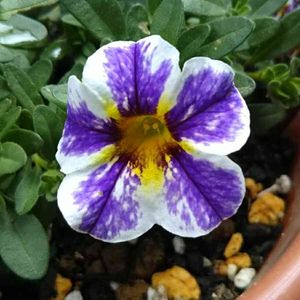 おはようございます☺️ カリブラコア ホーリースモーク💜 先日、植木鉢を家の前の 私道の端っこに置いて 日光浴させていたら 近所の人が運転する車に 倒されてしまいました😥 自分はその場に居ませんでした。 根がむき出しの状態が長かったので 弱ってしまったようで 新しい土と鉢に植え直してから カット✂️して 活力剤を与えて復活を祈ってたら 昨日咲きましたした😄 とりあえず良かったですが 倒された鉢は、あと5つあって 危険な状態の花もあるので 復活出来るように頑張ります💪