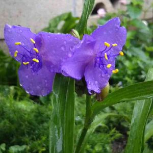 おはようございます☺️ 今日も雨です☔️💦 という訳で… 雨の日恒例⁉️ 雨に濡れるムラサキツユクサ💜 今日も雨量が多くなりそうです。 皆様、お気をつけ下さい。