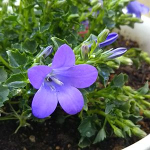 おはようございます😃 連投失礼します🙇 昨日、久しぶりに近所のホームセンターに行ったら ペチュニアとバーベナが入荷してましたが さすがに早すぎるので止めました😅 その代わりというか ベルフラワーを連れて帰りました😊