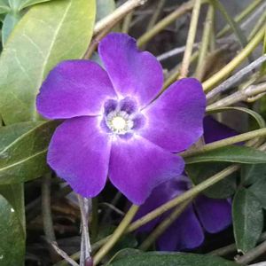 おはようございます😃 ヒメツルニチニチソウ💜 今年も咲いてくれました😊 普段は完全放置どころか 存在すら気にしませんが この時期だけは優しくします😅