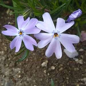 おはようございます😃 半月くらい前にお迎えした シバザクラが咲き始めました😊 分かりにくいかもしれませんが 薄紫色です💜