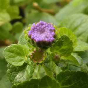お疲れ様です😃 今回も地味~な写真です🙏 アゲラタムのつぼみ。 ネットで調べたら 耐寒性はゼロとありましたが ダメ元で冬越しチャレンジしたら まさかの成功でビックリ😨💦 つぼみまで出来てしまいました😅 逞しいです‼️ 明日は夏日の予報なので 期待したいです😊