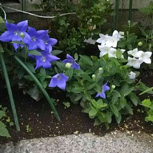 お疲れ様です😃 ベテランのキキョウです。 1回目の開花が終わり 散髪✂️💈して 2回目の開花が始まりました😊 ちなみに、後ろにあるのは 6月咲きのキクですが 8月になって再び咲き始めました😱 ただ、花は小さいです。
