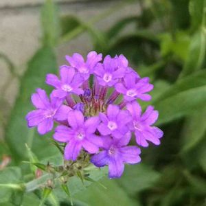 おはようございます😃 夏休みしてた三尺バーベナ💜 涼しくなって 活動を再開しました☺️ 花は可愛いですが 葉っぱはギザギザしてますし 茎を触ると痛いし 繁殖力がスゴいので 性格は攻撃的かもしれません😅 今日は久しぶりに晴れそうです😄
