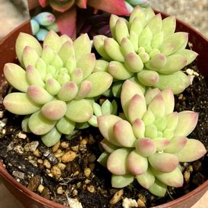 しばらくは買わないと決めていたのですが…… 寄せ植え用の鉢を買いに行ったら 我が家にいるピンクベリーより大きくて可愛くてお迎えしてしまいました🎵 土が見えないくらいに葉ざしが そして芽ぶいていました😄 ラッキーでしょ? 入荷した後に🍀がポロポロ落ちてしまってたようです😃