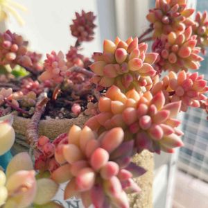 🏷つぶつぶの日 🏷ハニワの日 秋にフラリエでお迎えした、ビアポップ 外組で頑張ってくれてます😅 他に名前が出てこないけど同じくフラリエ でゲットしたつぶつぶちゃん達、簡易温室 で管理してますが先っちょ色づいて可愛く なって来たよ、つぶつぶの日参加させて 下さいね〜 そしてるるちゃんから頂いた820鉢と ハニピーはじめ、色んなピックと はにサックでハニワの日に参加させて 頂きますね〜 そして昨日、peanyatsの日だったから Σp📷ω・´)したのに寝落ちしてお蔵入り🥲 寄せ植えしたつぶつぶちゃん達 色づいて来たのでしれっと参加〜🤣