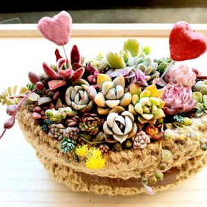 寄せ植えを編成変えて植え替えしました。左がエケベリアなどのロゼット型、右はクラッスラなどの縦に伸びる型を中心に、間にセダムやネックレス系を入れてみました。だいぶボリューム感出て良くなったと思います🌳🏵️🌳