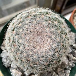 台風の影響はいかがでしょうか?🌀☔️ 皆様にも、植物さん達にも、被害が出ませんように🙏💦 さて、本日は子株が出てきた多肉さん達から…🤗🎶 マミラリア・満月さんです🥰💕 マミラリア属のサボテンって、多肉好きな方以外にも馴染みがあるんじゃないでしょうか?🌵😉 成長の速い月影丸は100均でも売ってますし、よくインテリア雑貨の店で見かけるカラフルな棘のサボテンさんも明日香姫というマミラリアさんらしいです🌈 こちらの満月さんは名前の通りまん丸に育つ品種🌕💫 仔吹きも良くて、お月見団子みたいな群生株になりやすいそうです💓 そこが可愛くてお迎えしたの( ´͈ ॢꇴ `͈ॢ)・*♡ 真っ白の白鳥さんほど全然痛くない訳じゃないけど、我家の赤棘マミラリア・猩々丸さんと比べると、トゲもあんまり痛くないです👀 直径5cm以上に育つと冠状にベージュのお花を咲かせると聞くので🌸、もうすぐ(来年?)開花してくれるかなぁ〜🎶と楽しみにしています(*^。^*)💕