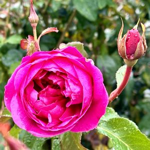 今朝は雨になりました 挿し木のバラ、マチルダが又咲いてくれました🌹大好きなバラです。